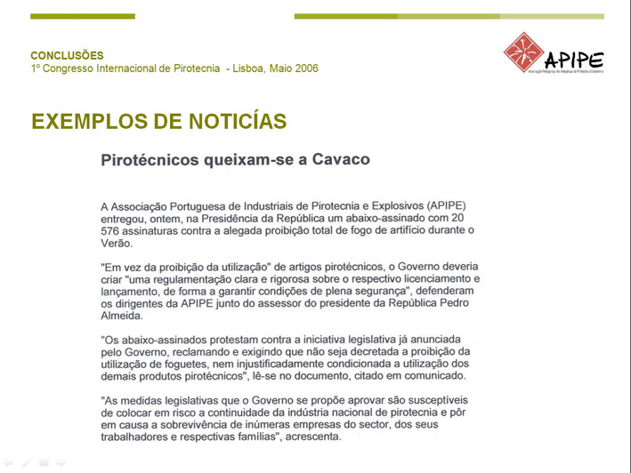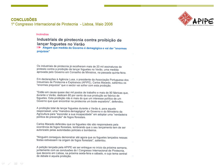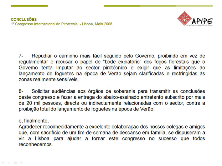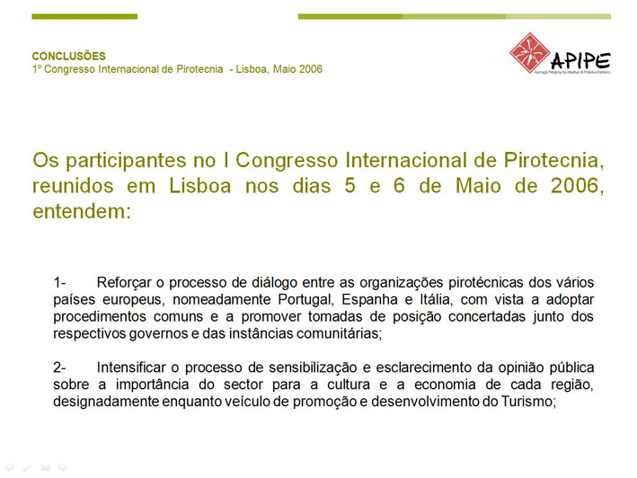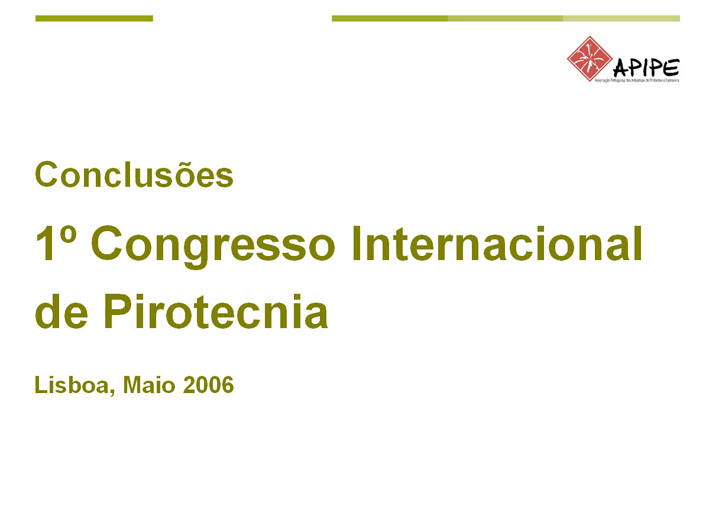 » 1º CONGRESSO INTERNACIONAL DE PIROTECNIA